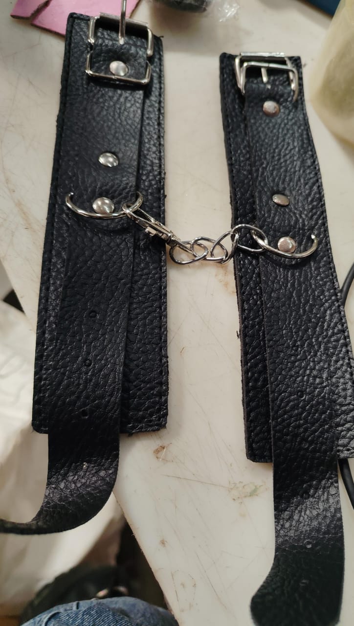 Leather Plush Handcuffs Choker Collar Set With Chain