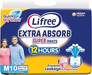 Lifree Extra Absorb Super Unisex Adult Diaper Pants Size M With Quick Dry Sheet 10 Count