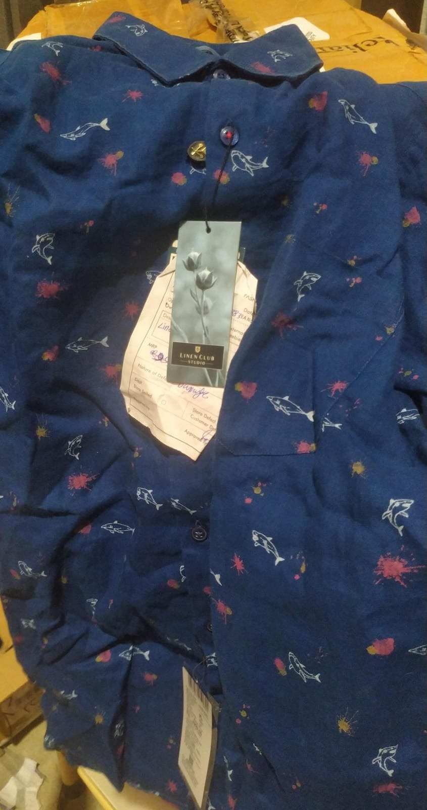 Linen Club mens Printed Spread Collar Shirt multy colour size 39