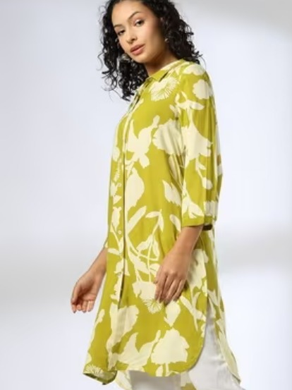 Liva Fusion Women Floral Print A Line Kurti Lime Size M