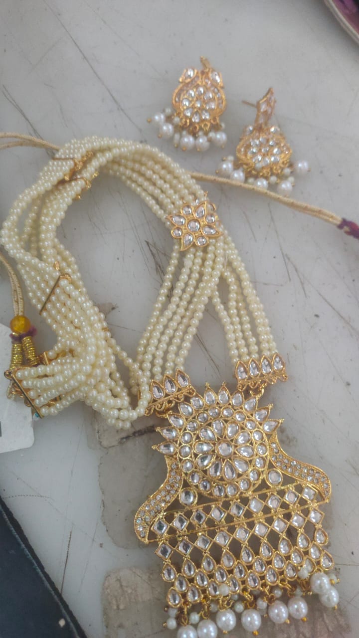 Long Necklace Rani Haar Set Golden Colour White Stone
