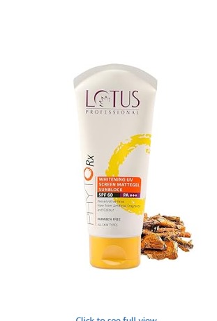 Lotus Professional Normal Skin Phytorx Whitening Uv Screen Mattegel Sun Block Spf 60 Pa 75 gm