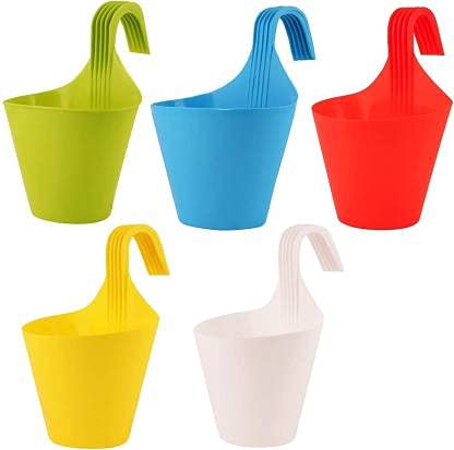 Maanit Plastic Hook Hanging Pot Multicolor Pack Of 5 Plant Container Set Pack Of 5 Plastic