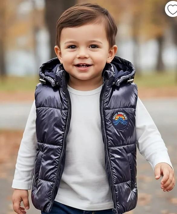 Mark And Mia Babyhug Woven full Sleeveless Padded Hooded Solid Jacket colour black size 34 year