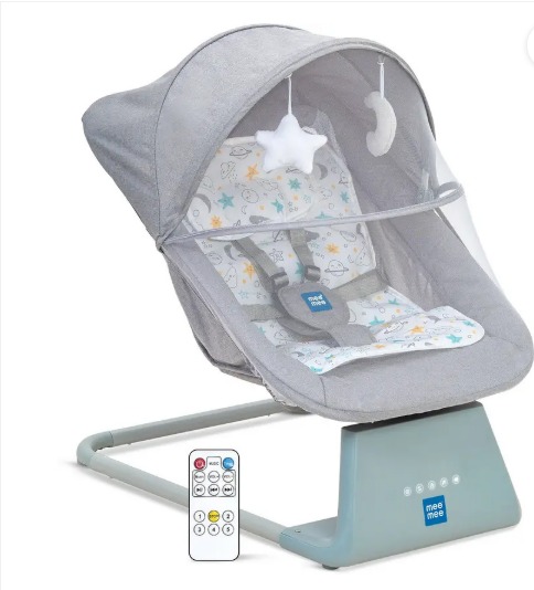Meemee Electric Baby Rocking Swing Bluetooth Connection With Adjustable Speed Swings Grey