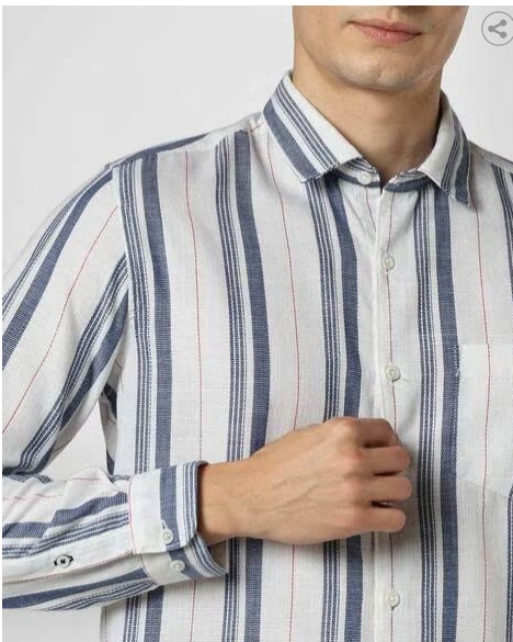 Men Striped Regular Fit Shirt with Patch Pocket size 40 white