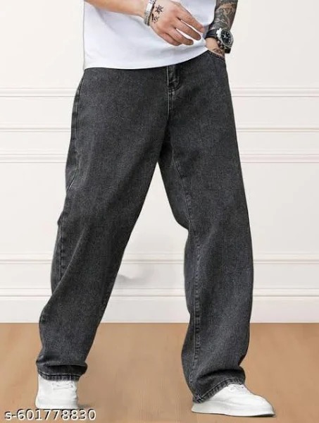 Mens Loose Fit Mid Rise Jeans Grey Size 32