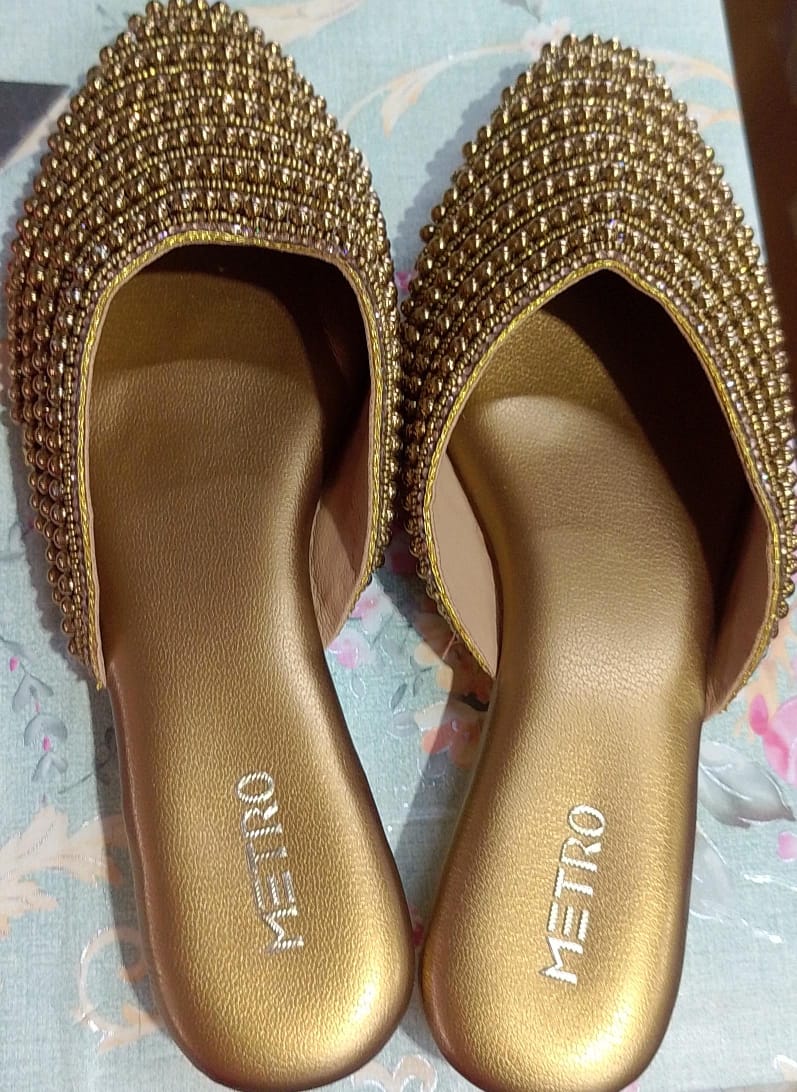 Metro Antique Gold Ethnic Sandals for Women 23 Size