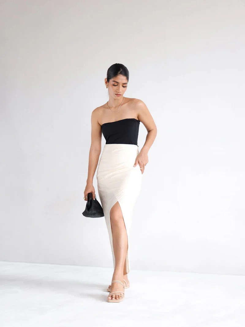 Mimosa Side Ruched Midi Skirt Size S Beige Color