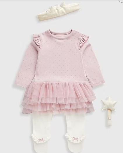 Mothercare Girls Cotton Tutu All In One With Crown Wand Set Size 1 To 3 Months