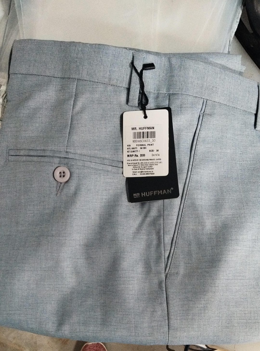 Mr Huffman Men sky blue Self Check Formal pant 30 size