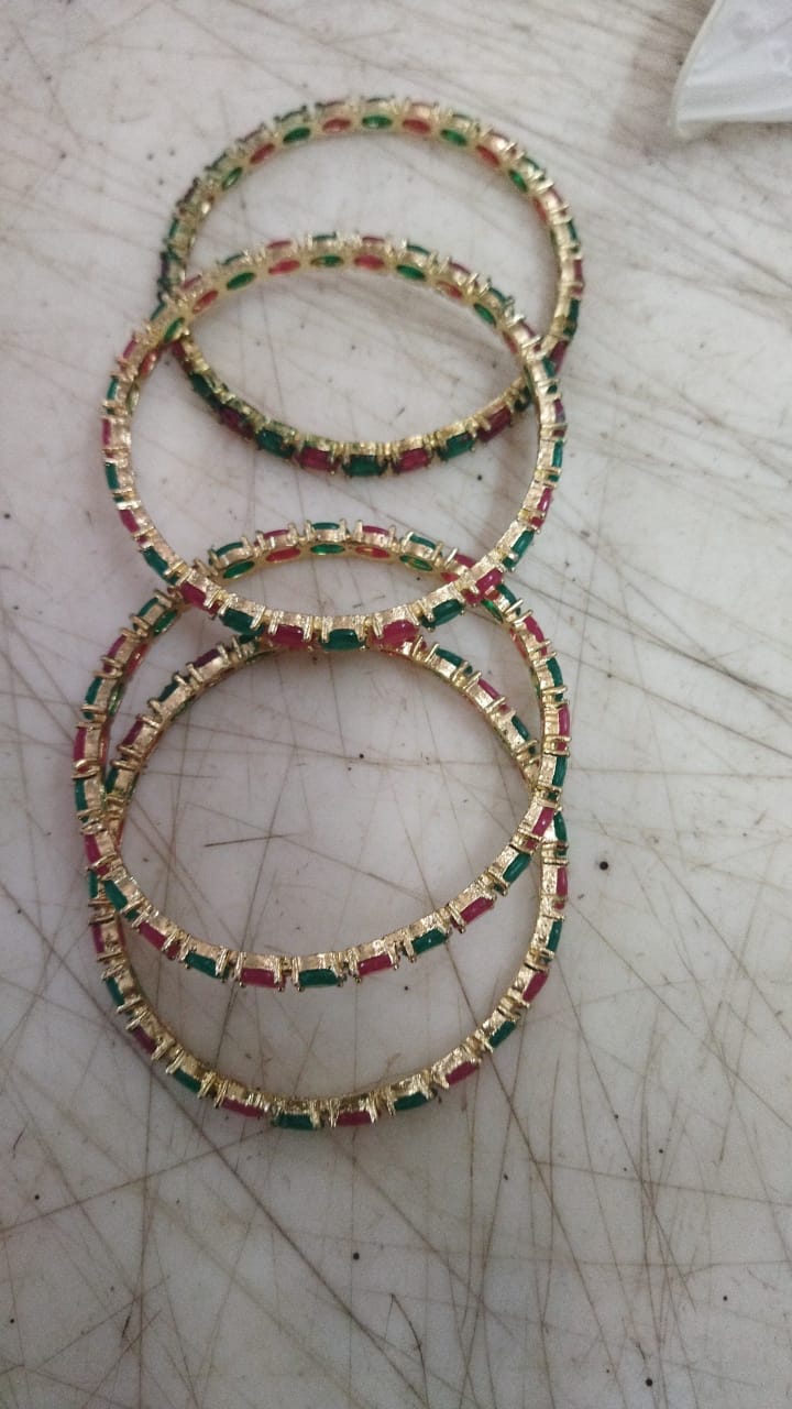 Multicolour Gold Plated Ad Studded Bangles Set Of 4 For Women