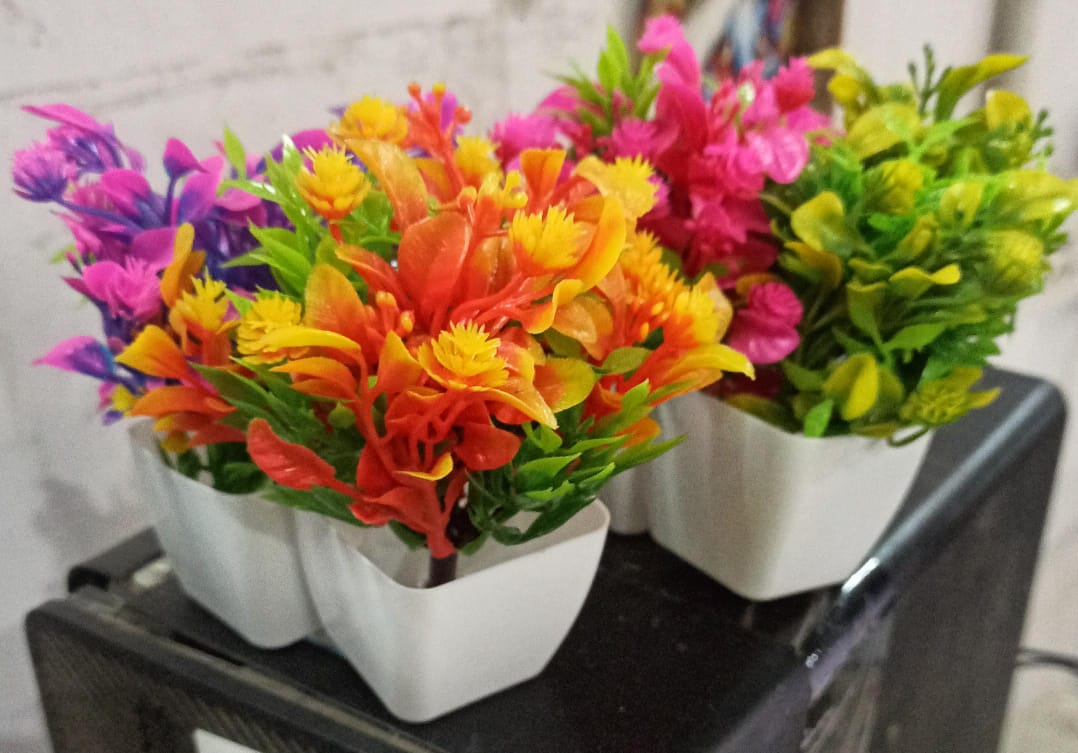 Multicolour Mini Artificial Plant For Home Decor Pack Of 4
