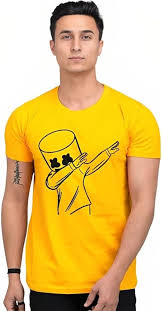 Mustard Marshmello Printed Polyester T Shirt Size S For Men