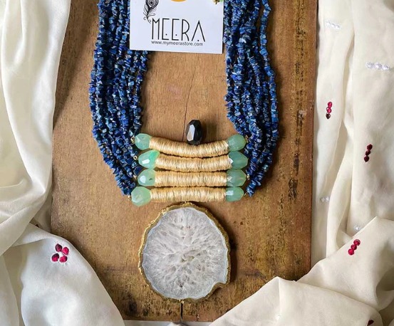 My Meera Store Dreamy Sky Chunky Blue Necklace Set