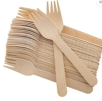 Natural Biodegradable Wooden Fork Spoon Pack Of 100