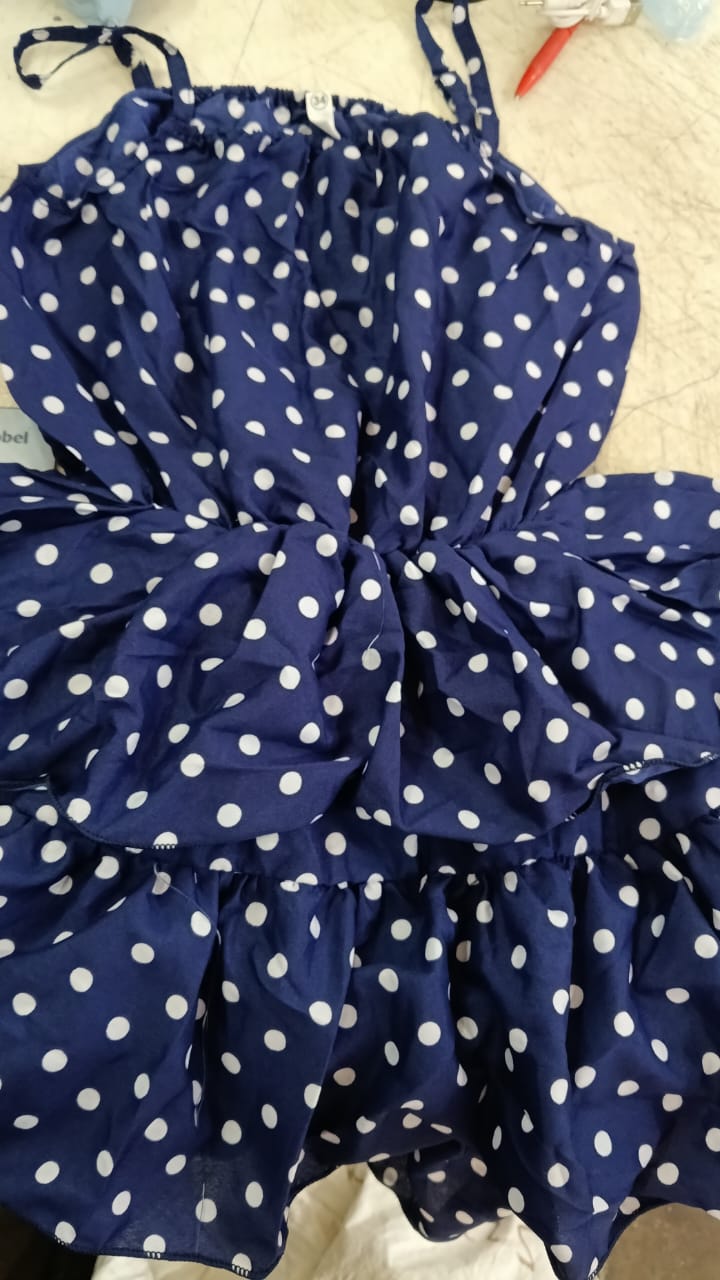 Navy Blue Dotted White Frock For Kids Girls For 6 Yr