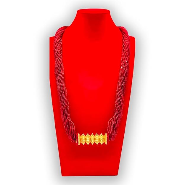 Nepali Choice Red Tilhari Pote Necklace With Gold Toned Accent