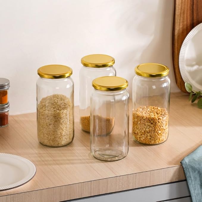 Nestasia Glass Containers for Kitchen Storage with gold cap pack of 4