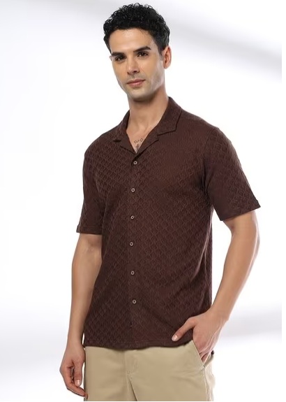 NETPLAY Men Geometric Knit Resort Regular Fit Shirt dk brown 39
