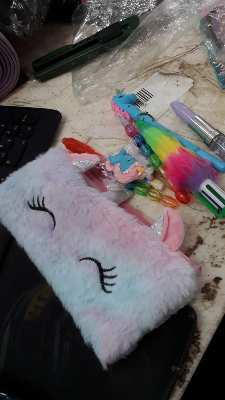 New Attractive Combo Fur Pouch Paper Soap Pen 1 Pack Smile Eraser 1 Key Chain