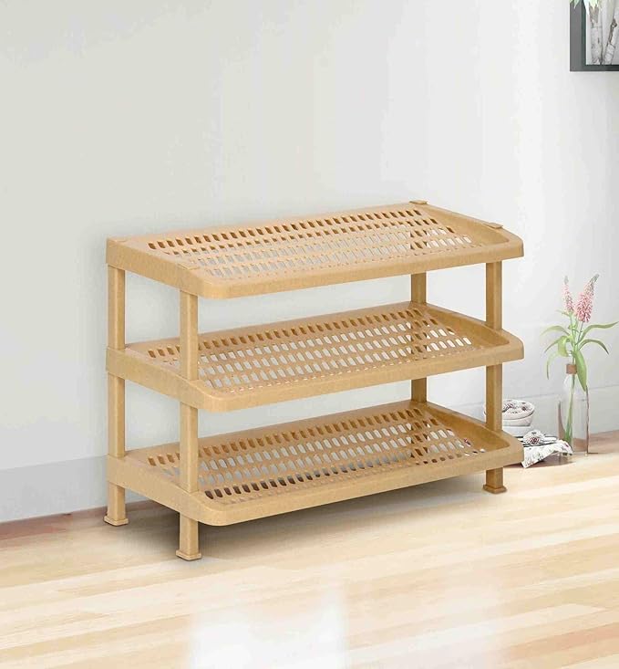 Nilkamal MULRACK3 Plastic Shoe Stand for Shoe Storage marble beige colour