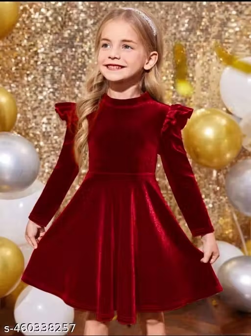 NOW Velvet Winter Dress Red Colour 7To 8 Years