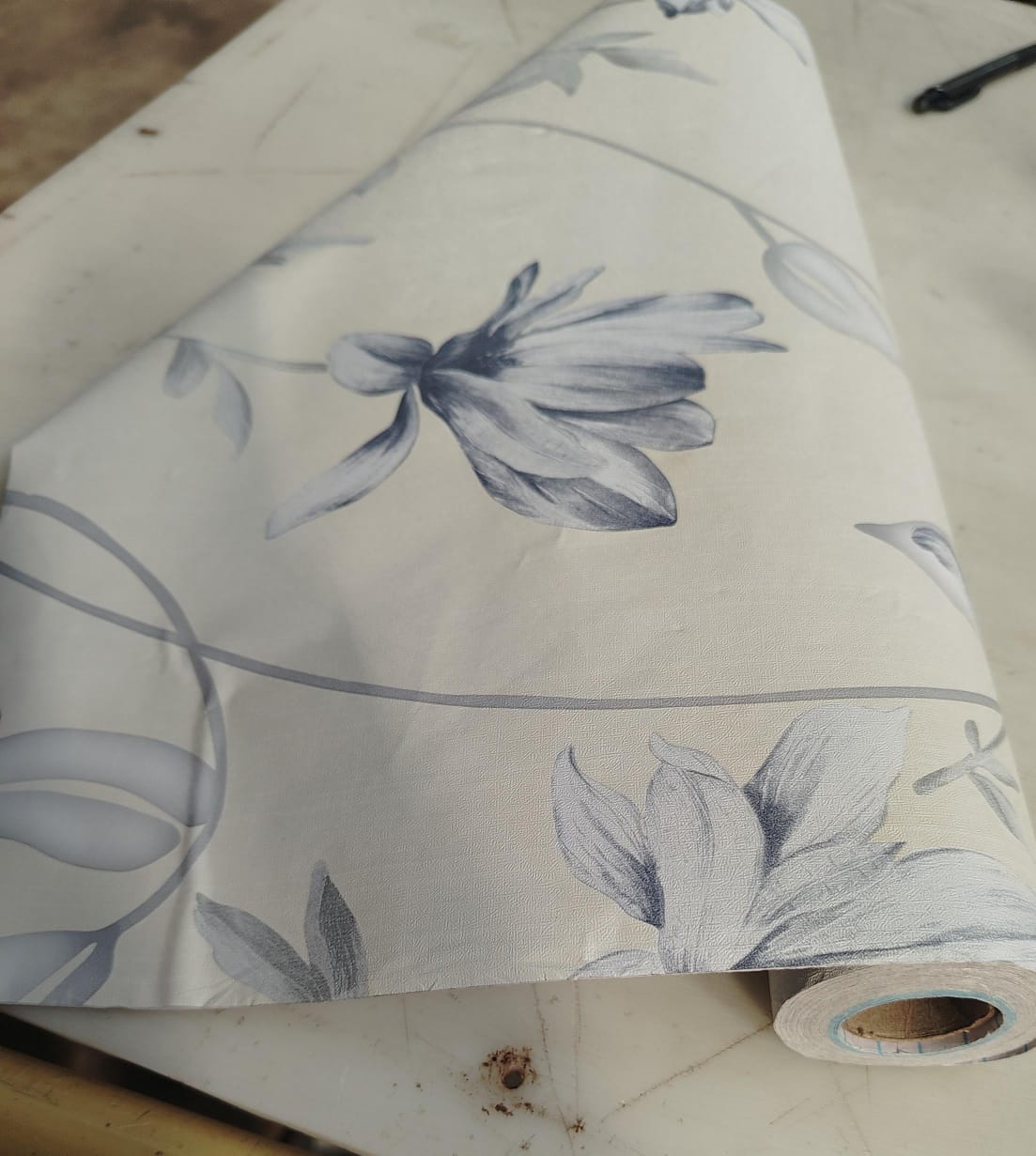 Off White And Grey Flower Printed Wallpaper Approx 25M X 20 Inch