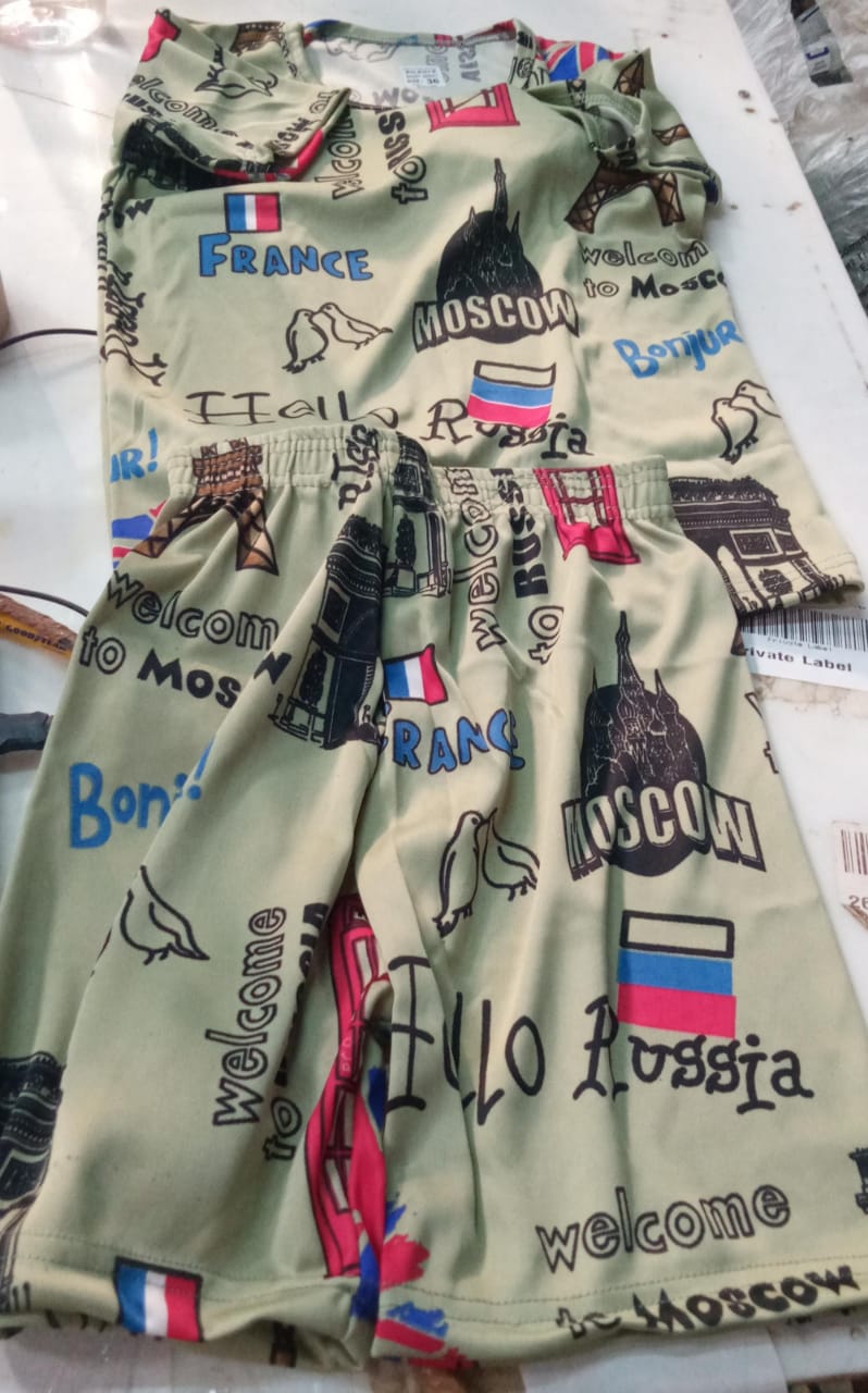 Olive Green Printed T Shirt And Short For Boy Size 36