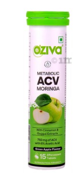 Oziva Metabolic Acv Moringa Effervescent Tablet Green Apple 15N