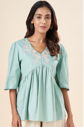 Pantaloons Aqua Embroidery Cotton Slub VNeck Women Regular Fit Tunic XL