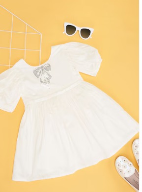 Pantaloons Junior Off White Solid Knee Length Festive Girls Flared Dresses SIze 6 To 7 yrs