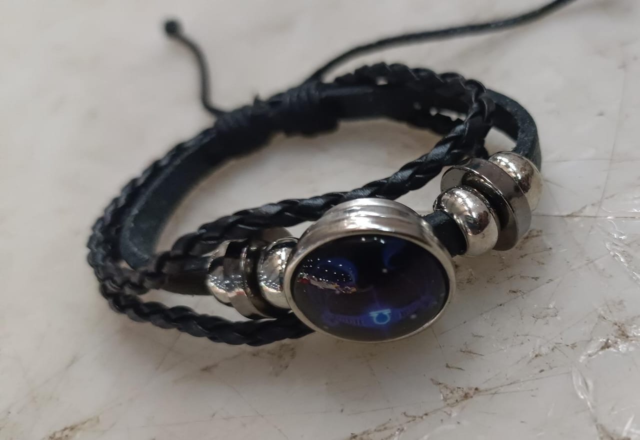 Parikh Agate Sagittarius Zodiac Leather Bracelet