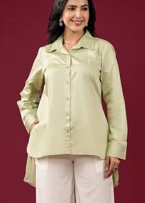 Peachmode Casual Regular Sleeves Solid Women Green Top Size M