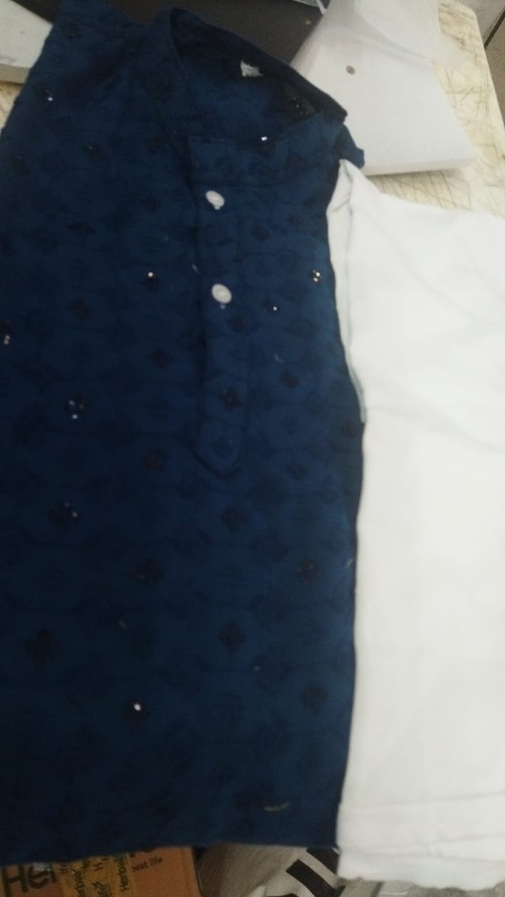 Peacock Colour Kurta With White Pajama Size 40 For Men