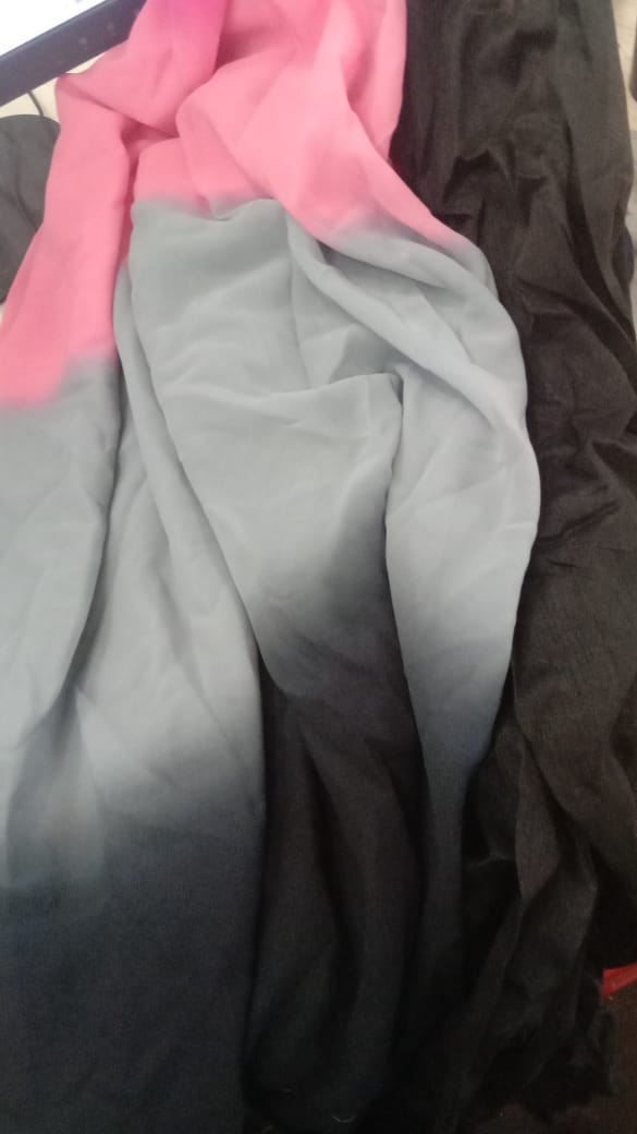 Pink And Black Colourblocked Saree For Women