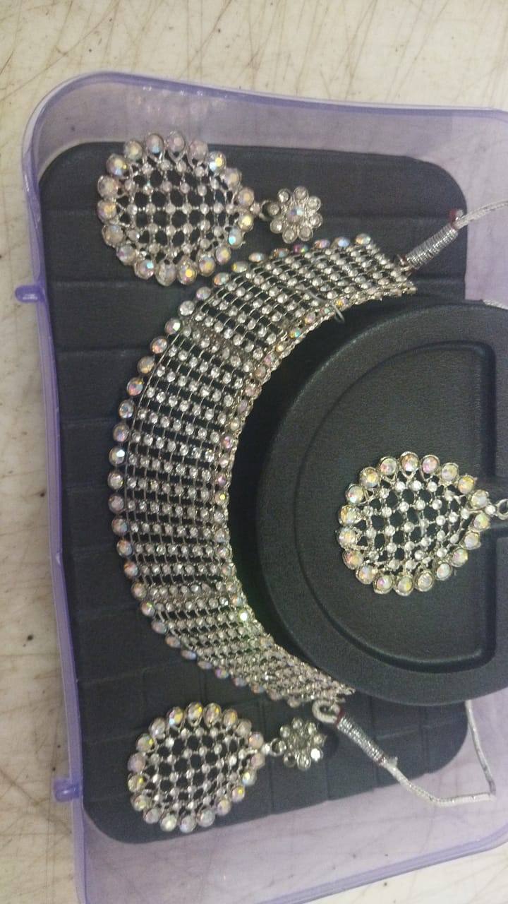 Pink And Silver Color Stone Design Women Jewellery Set