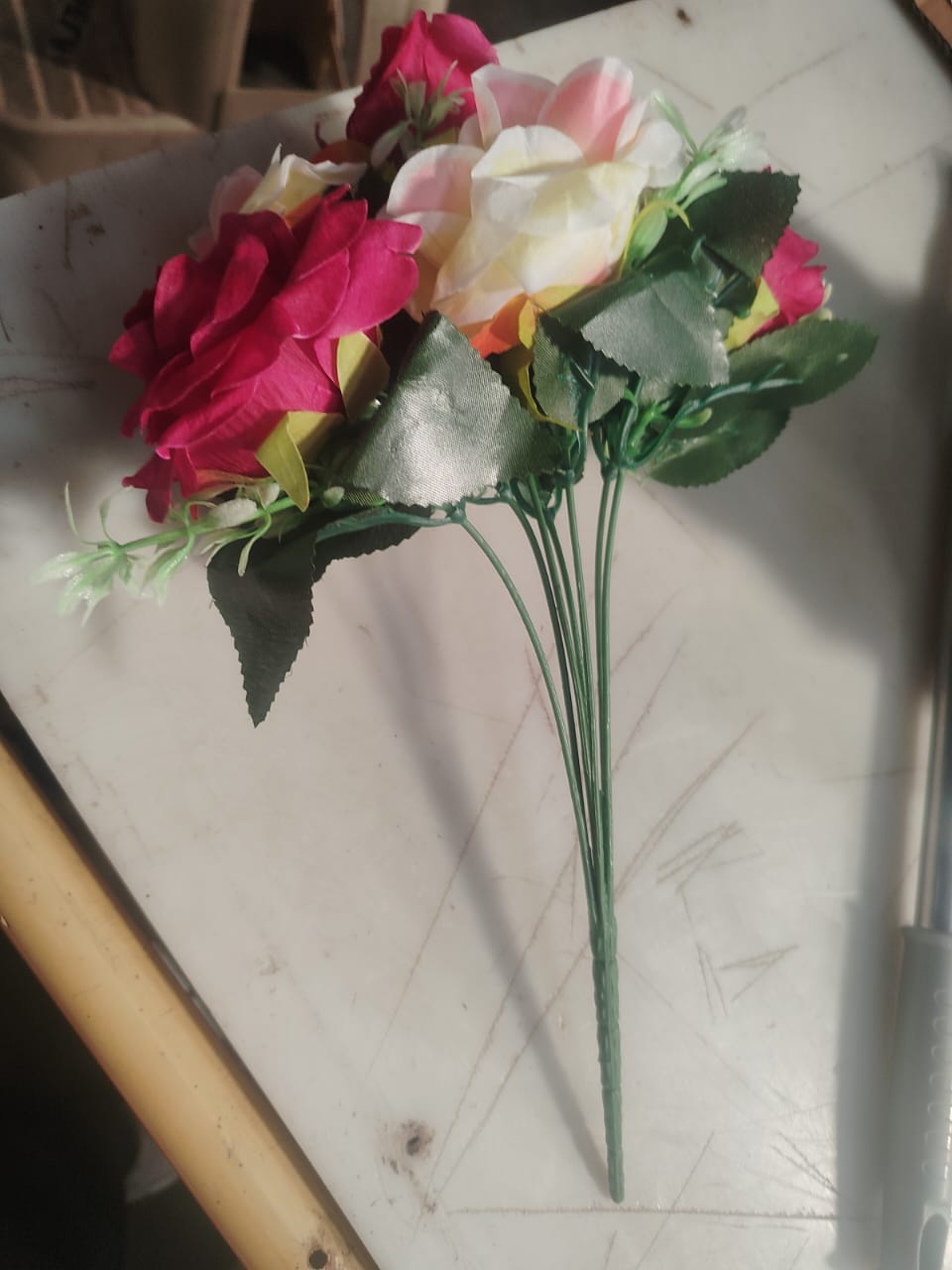 Pink White Rose Artificial Flower Bunch
