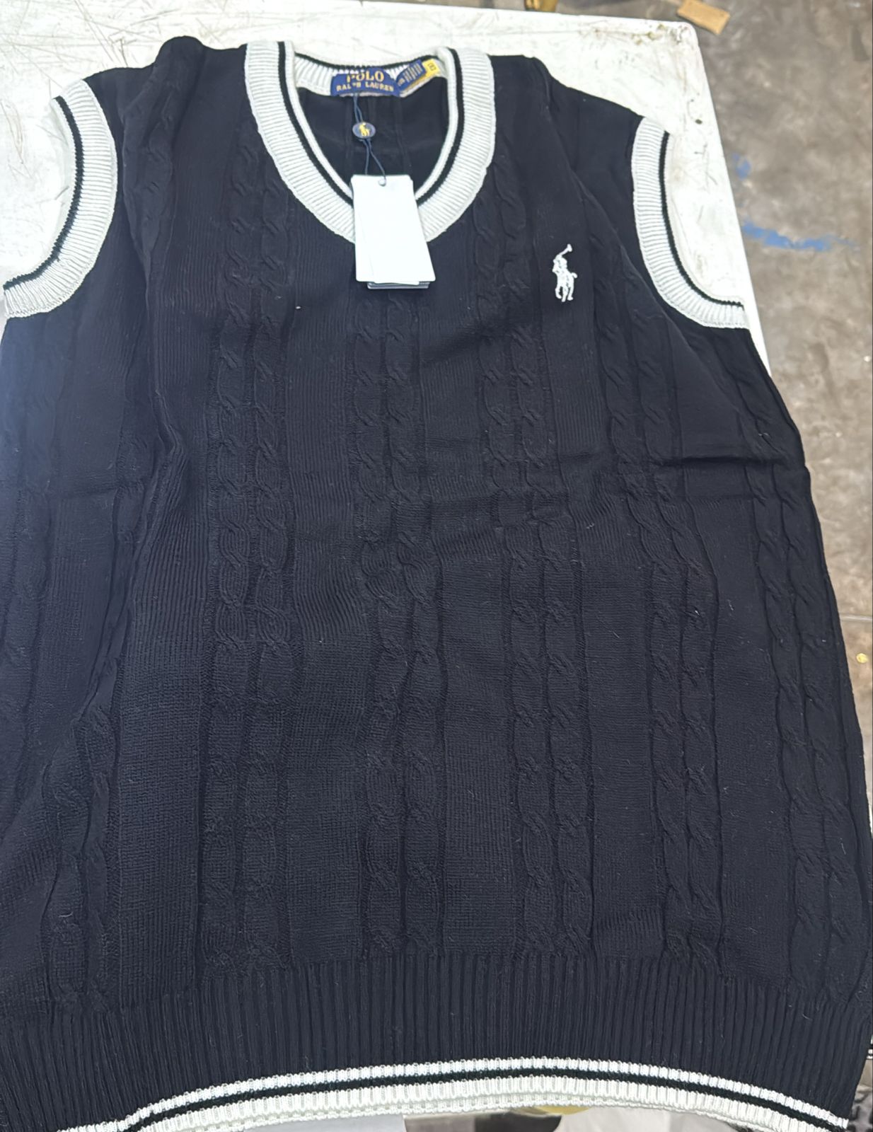 Polo Ralph Lauren MenS CableKnit Sleeveless Jumper Size M White And Black Color