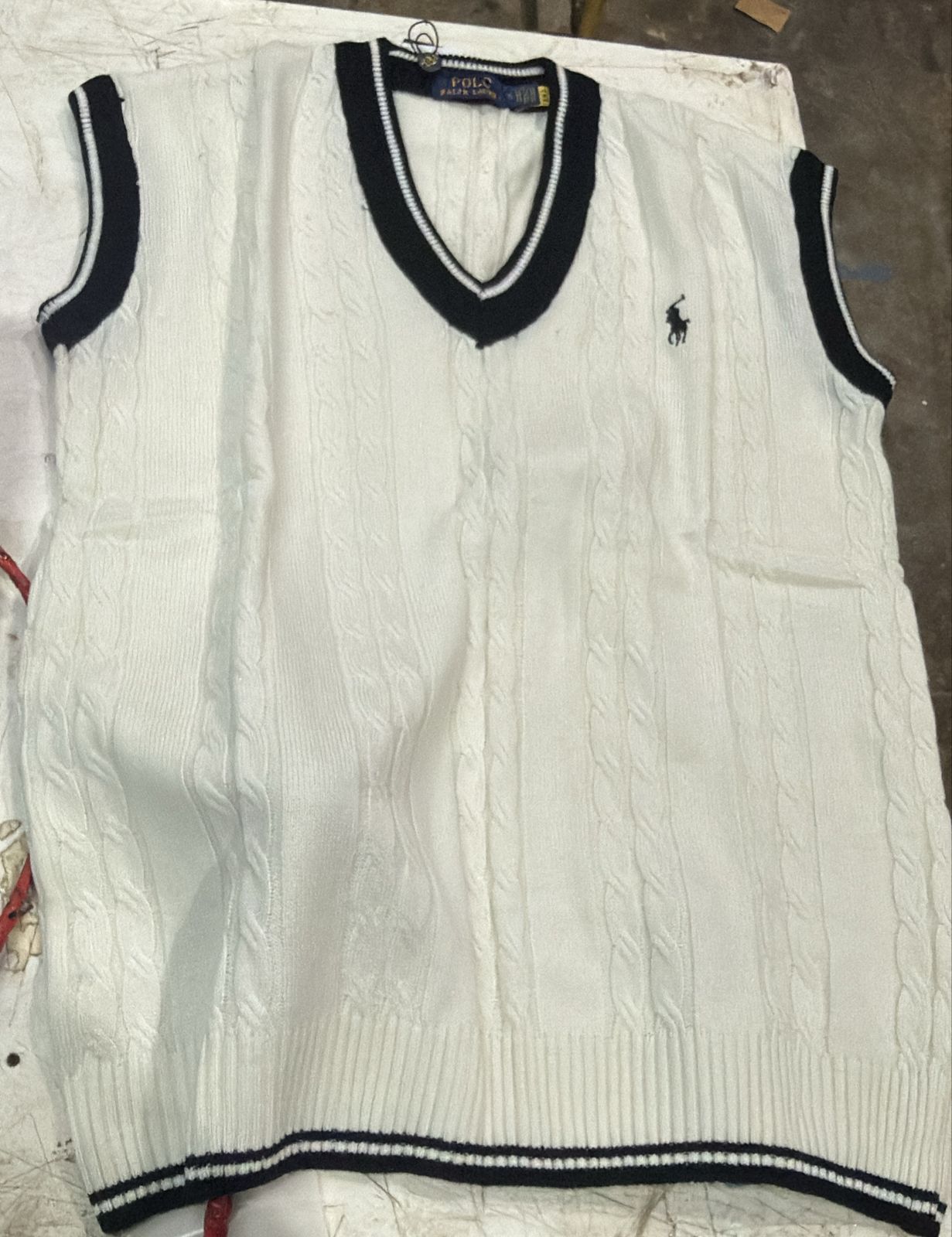 Polo Ralph Lauren MenS CableKnit Sleeveless Jumper Size Xl White And Black Color