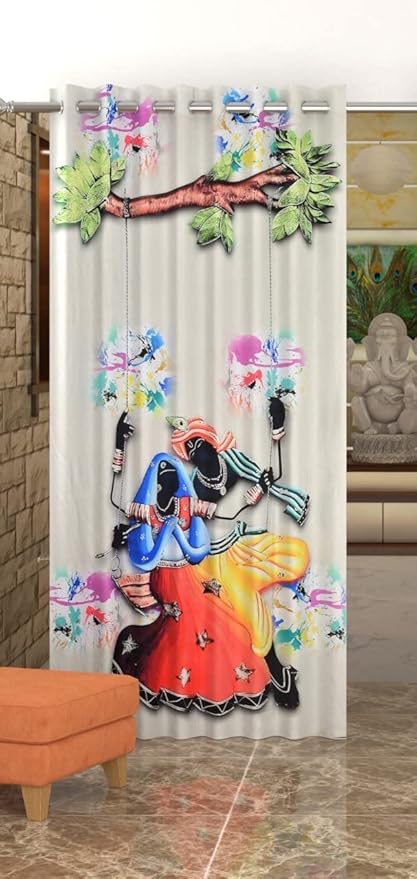 Pooja Room Curtain Drapes Radha Krishna 1 Piece 4 X 5 Feet