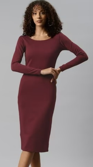 Popnetic Maroon Boat Neck Bodycon Dress For Women Size S