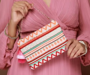 Preyasi Rocking Rows Orange Gold Zipper Pouch