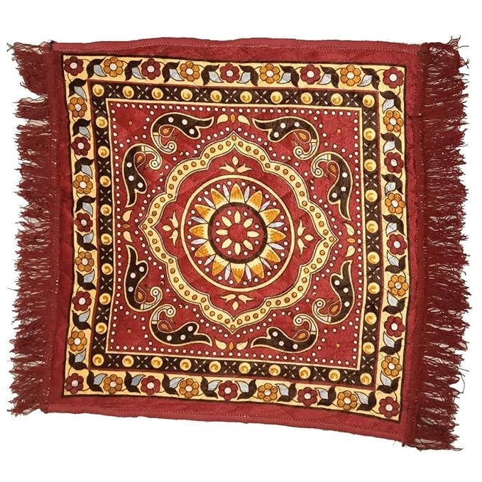 Printed MaroonRed Velvet Pooja Aasan MatPuja Prayer Mat for Sitting in Pooja Room