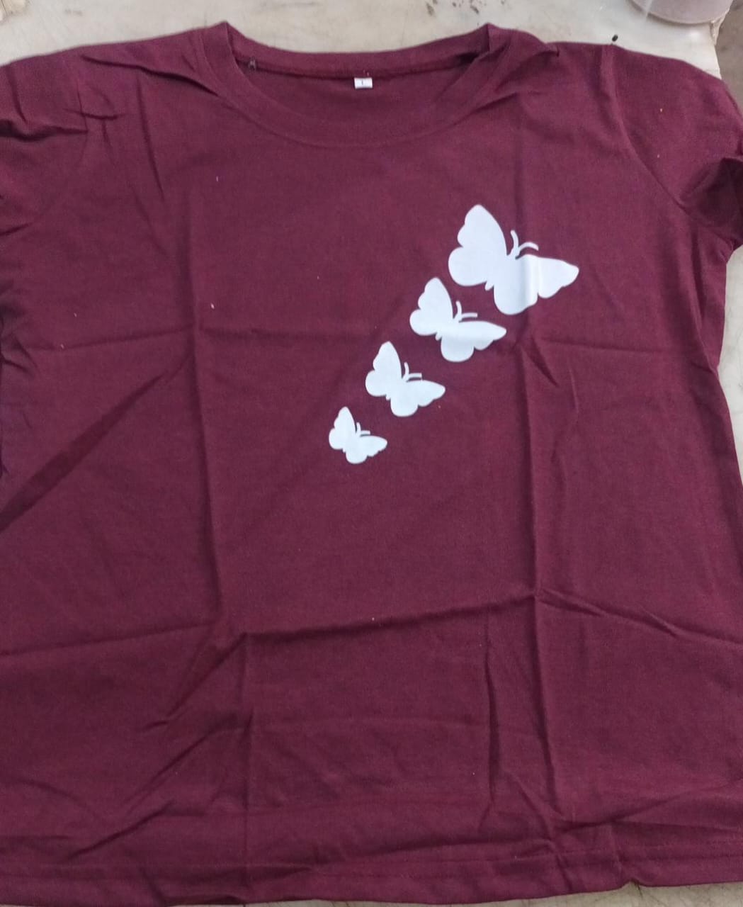 Printed T Shirt For Womengirl In Cotton In Round Neck Colour Mehroon Size L