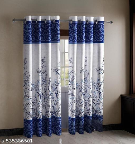 Privat Lable Sirjanhaar Presents Beautiful Tree Printed Panel t curtains Pack of 2 Blue And White Colour