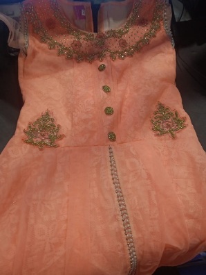 Private Labe Festive Wear Stitch Ladies Peach Embroidered Suit KUTRI SIZE XXL ORENGE