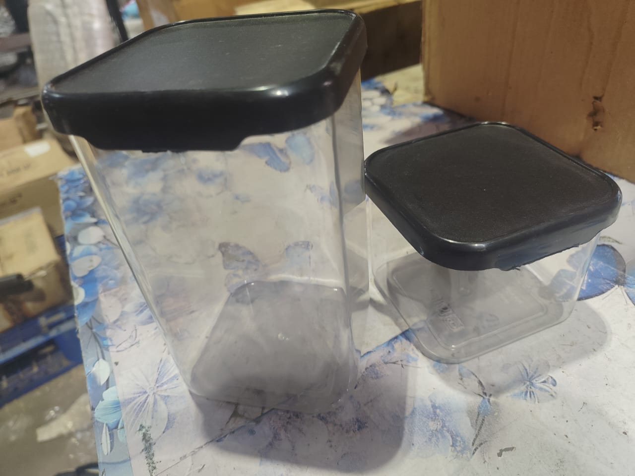 Private Label 6 pic Plastic Transparent Storage Jar and Container Set big size and 6 pic Plastic Transparent Storage Jar and Container Set small