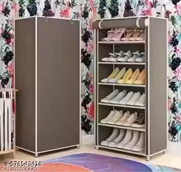 Private Label 6 Shelves Shoe Rack Plastic with Zip Door Cover Side Pockets Black