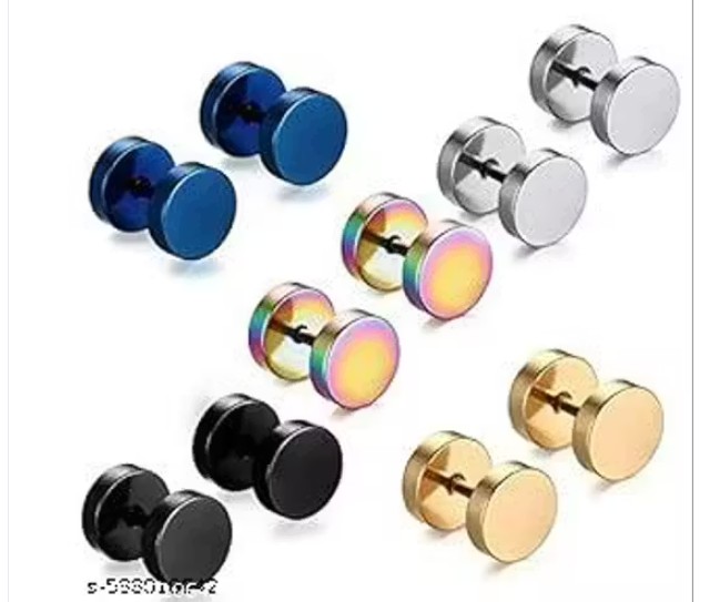 Private Label Aroncent Mens 5 Pairs Stainless Steel Stud Earrings Set Multicolour